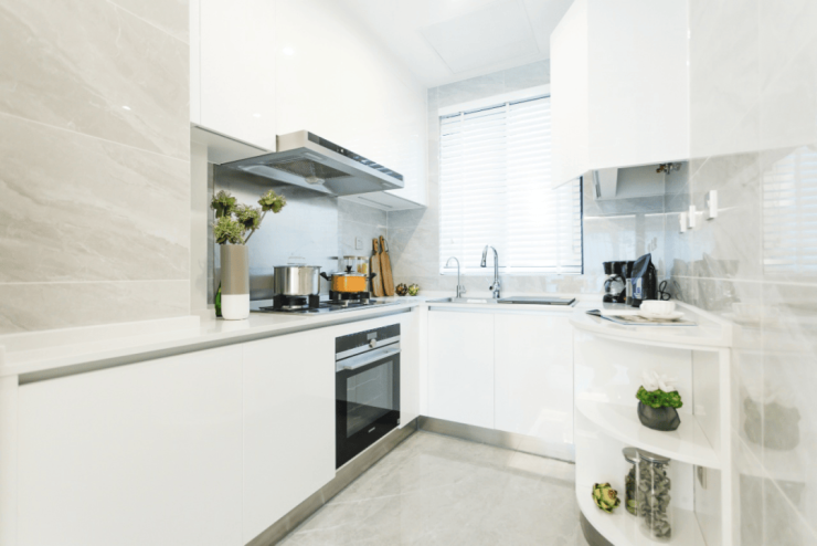 U型厨房,空间足够;做推拉门,打开和餐厅空间融为一体,关上之后是独立的空间,热爱烹饪的人可以尽情享受