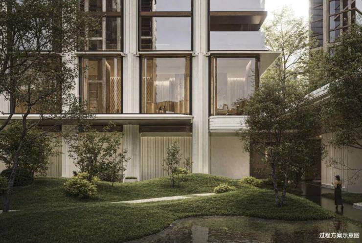 会所环绕着中心水苑展开,泳池、健身、瑜伽、私宴与茶室都被包裹在其中;连地下空间也被赋予自然的渗透,约30米面景的中央车站大厅,将光与绿意引入地库,让归家像步入一座埋入自然的殿堂。