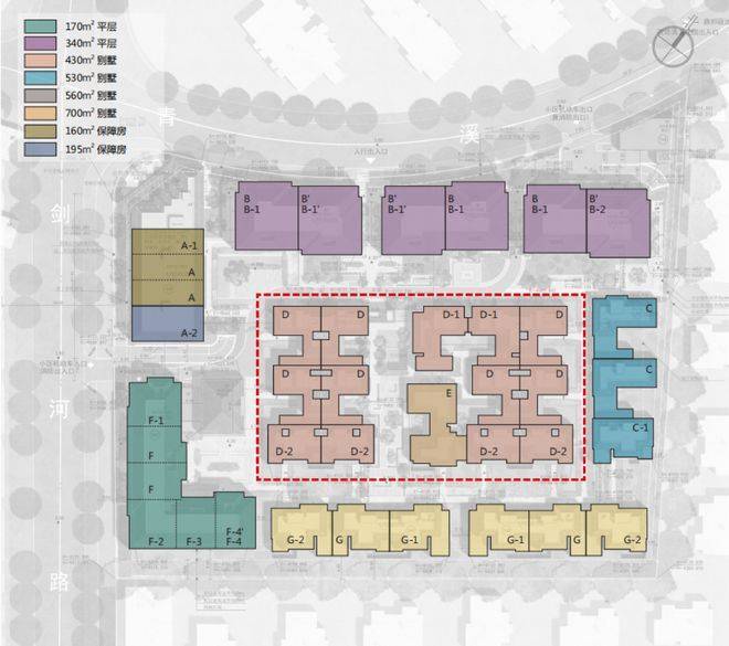其中1#为保障房,12套建面约160-195㎡户型。