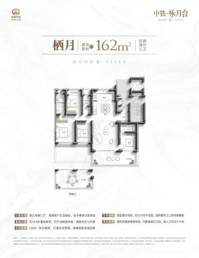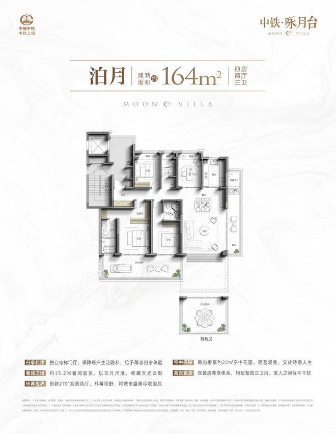 四室两厅三卫·套房式主卧·双层露台空间·顶层空中花园