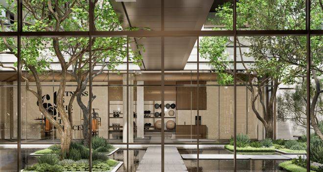 一层跨二层的立体景观,规划云台水瀑、健身场域等,常规社区难得一见