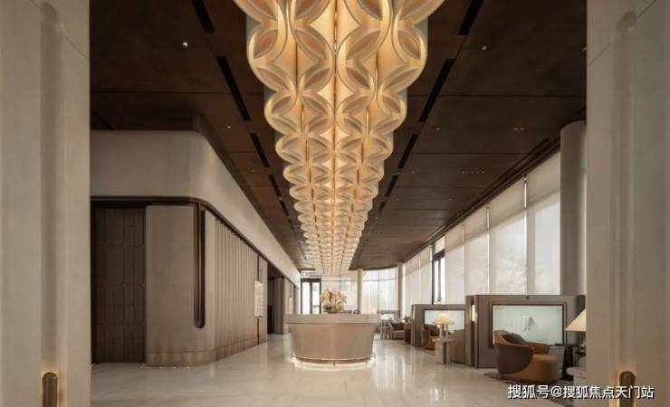 项目归家门庭采用石材,叠加铝板元素,构建出极具质感的空间和松弛氛围,令张江的归家仪式感焕然一新。