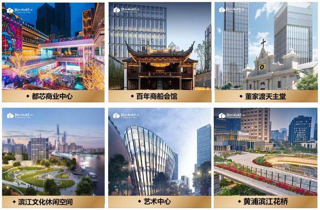 复合业态:约46万方超高层地标及高端企业总部办公楼,约17万方大型商业中心,约4.2万方星级酒店,约12万方高端住宅,约5万方公共绿化,同时坐拥董家渡天主堂和商船会馆2栋历史保护建筑、6个口袋公园(花桥空中花园/教堂花园/会馆花园/百草园/健康花园/中央花园)、滨江文化休闲空间等文化功能配套。