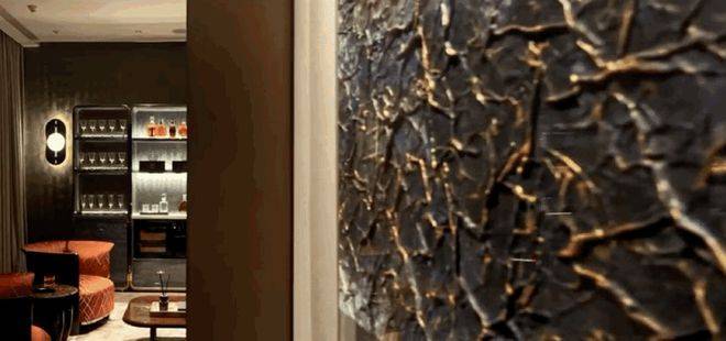 亮面瘤木椅背,搭配蓝色木皮和艺术玻璃的组合;在卡拉瓦乔酒窖光线般的灯光渲染下凝实感官体验,自然沉浸其间。张弛有度的比例,划分利落严谨的形体;自带雪茄恒温箱冷藏室的定制酒柜,及意大利水晶酒具DAVINCI配套,带来极致的品鉴享受。