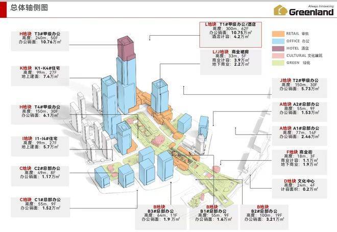 其中4栋超高层,分别为300米、240米以及2栋150米塔楼组成。