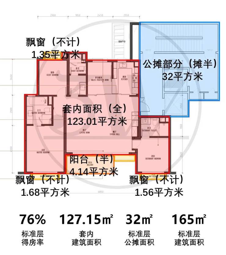 指建筑物的楼梯、电梯井、外墙、公共门厅、走道、设备间、首层大堂及小区内其它一些配套设施的面积总和;