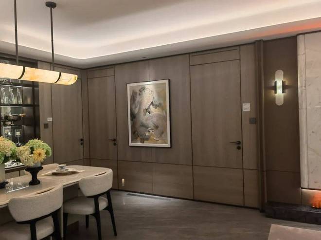 如果不仔细观察,你能发现这面墙后居然隐藏了三个房间吗?为了室内的整体美观,项目把三个房间门嵌入了背景墙之中,做工严丝合缝,墙面与门浑然一体,美观的同时还兼顾了隐私性!