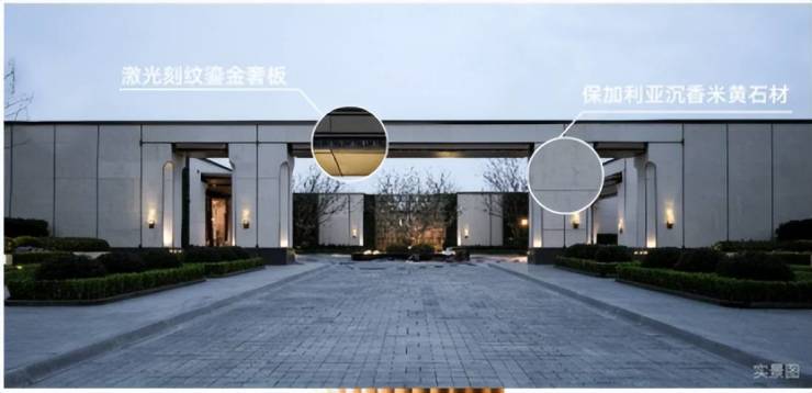 高6m、宽约50m阔尺归家门庭。精选保加利亚沉香米黄石材,搭配激光刻纹鎏金奢板,隐贵门庭。