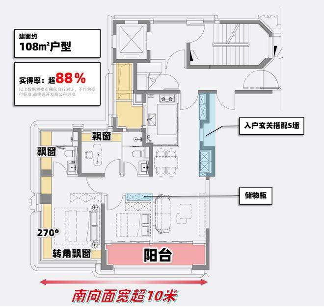 约108㎡边套户型实得率超88%—实际使用感受逼近传统120㎡甚至130㎡。通过一系列新规允许的合理手段,把每一寸都转化为可使用的家庭空间。