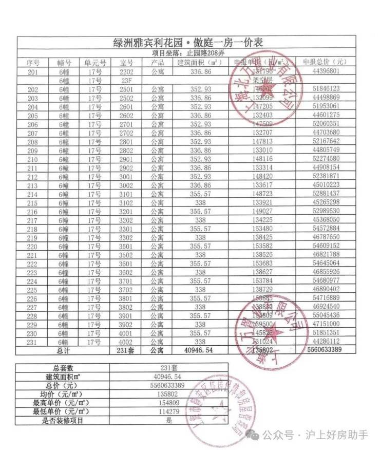 过会均价:13.58万/平