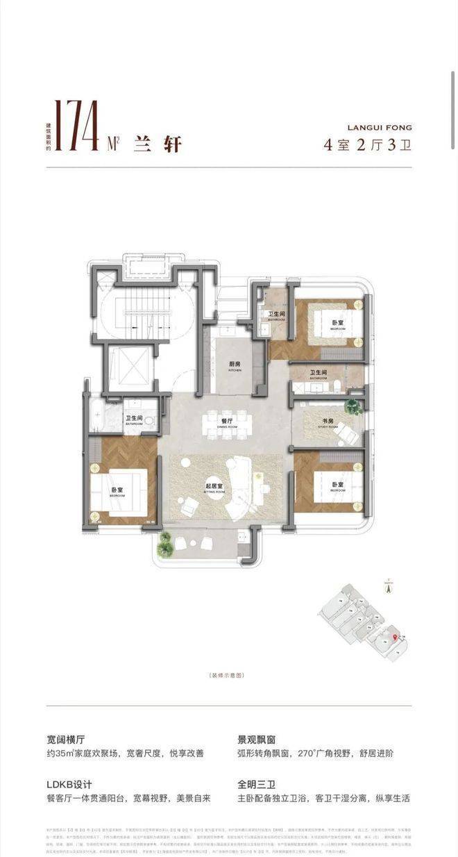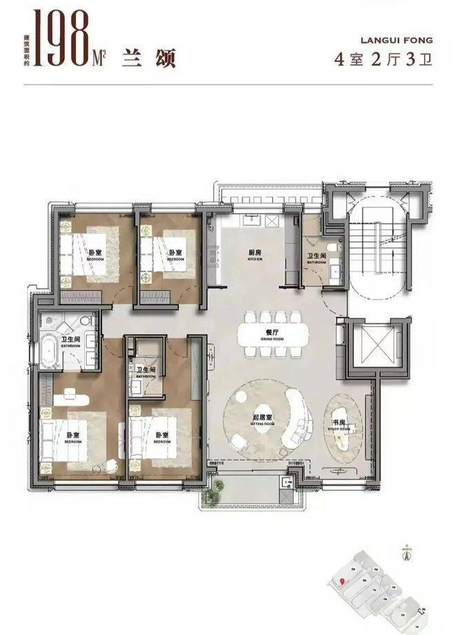 2) 洋房大平层精装198平4+1房三卫