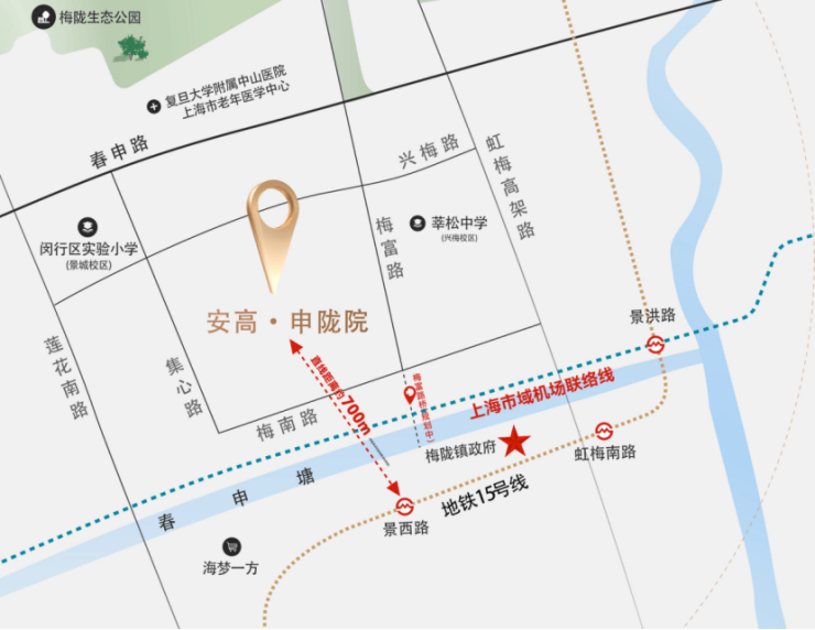 摊开上海楼市地图,中环线永远占据着一席之地。直线距离中环线2公里,虹梅路高架一线直达,这就是安高申陇院的地理优势。