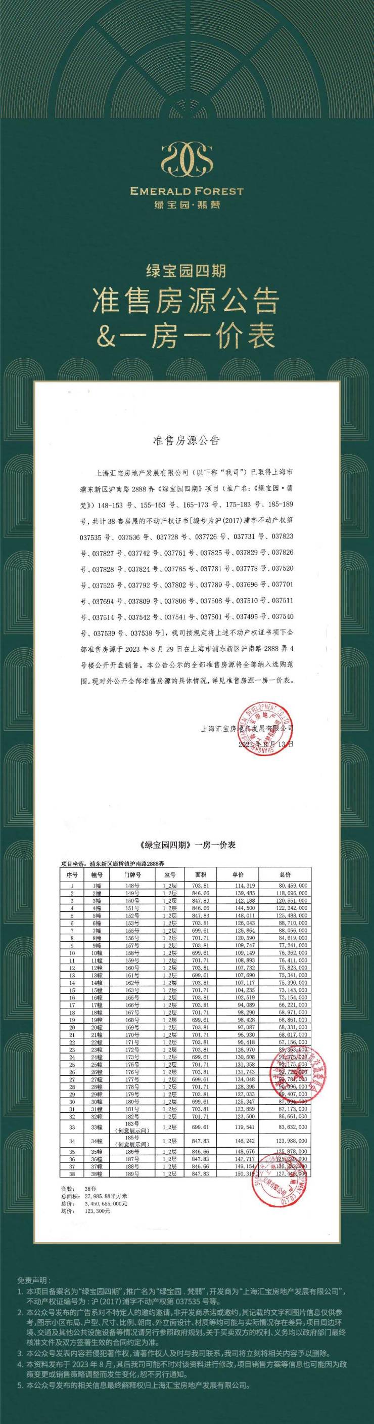 【绿宝园·翡梵】整体占地面积约6.6万方,由38栋建面约700-850㎡法式独栋庄园别墅组成,对应的是约1.5-2亩的占地面积,每个业主能享受超大花园带来的浪漫生活。