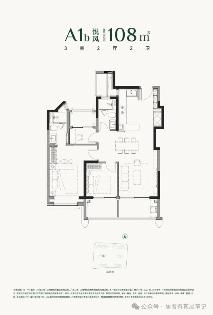 建面约108㎡3房2厅2卫