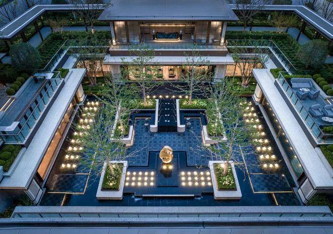 景观设计上,将东方园林造景的意境与意大利海派风格相融,中轴对称,以两轴两园三进礼序,打造高奢酒店式艺术生活园境。