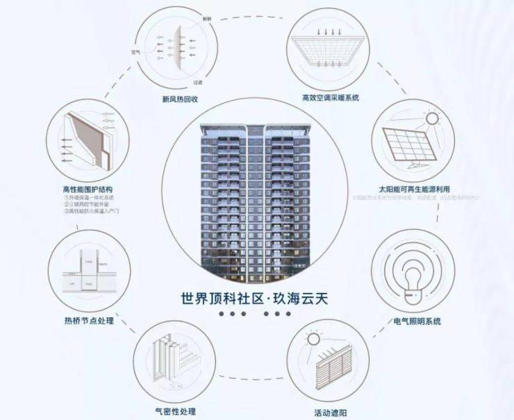 8大超低能耗技术(通过外墙、屋面、门窗优异的保温隔热性能,结合具有高效热回收功能的新风系统的运作,使四季的室温维持在人体适宜的温度)之外,增加户式新风系统、高效VRV空调、局部太阳能热水系统、超低能耗围护结构、雨水回用系统、自动微喷灌系统、海绵城市等技术,使项目达到国际绿色建筑更高标准:绿建三星级(住建部考核审定认证),领衔时代健康、理想人居。
