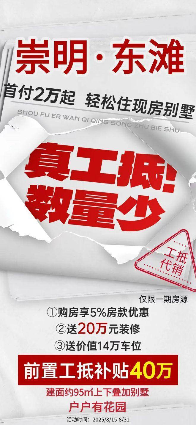 崇明东滩 品质住宅「东滩海上明月」主推建面约95㎡-150㎡叠墅!直降90W+95折!248万买别墅+送车位!优惠力度非常大!目前房源充足!二期加推168套建面约95㎡叠加别墅;均价3.36万/㎡认购金25万;