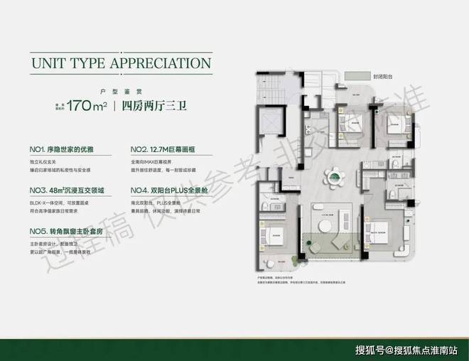 除了阳台外,项目户型设计还有很多出彩的地方,主力建面约170-200-220-240-270方,下面我们先来看首开的高层户型: