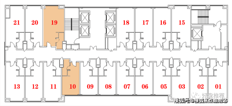 每层为19户,朝南12户,朝北7户