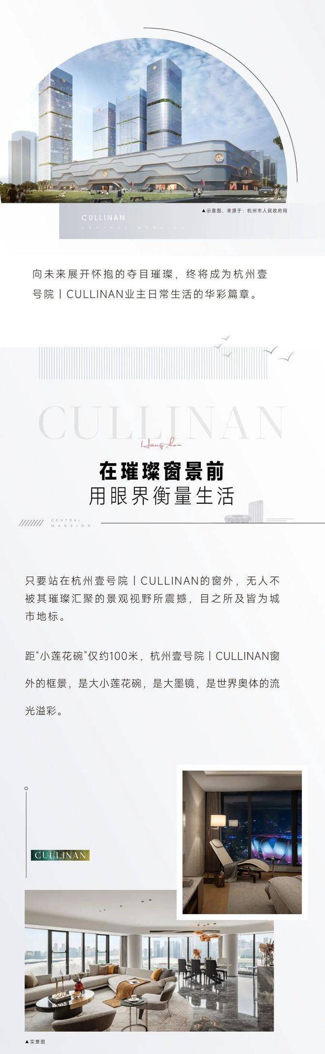 The final commercial large-sized apartment "CULLINAN" of Hangzhou One Residence is approximately 400 meters away from the Lotus Bowl. It is one of the most premium assets closest to this super IP.