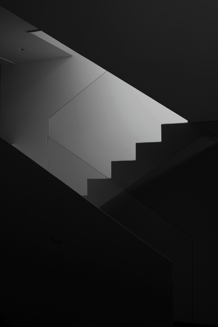 楼梯区完全被几何占据,自然光恰到好处的平衡,进一步呼应着空间的心境,衔接了生活和居所。
