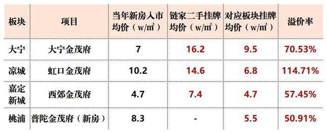 据贝壳数据统计,金茂府与同板块二手房相比,挂牌均价比板块均价高出50%以上,最高溢价甚至突破114.71%!
