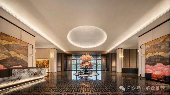 酒店入户同样是对标半岛酒店,车马院落客区的檐口、标识、星空顶等,增强入户的仪式感和奢华感。落客区的接待门采用海鸥丽晶酒店同款,尽显酒店式归家体验。