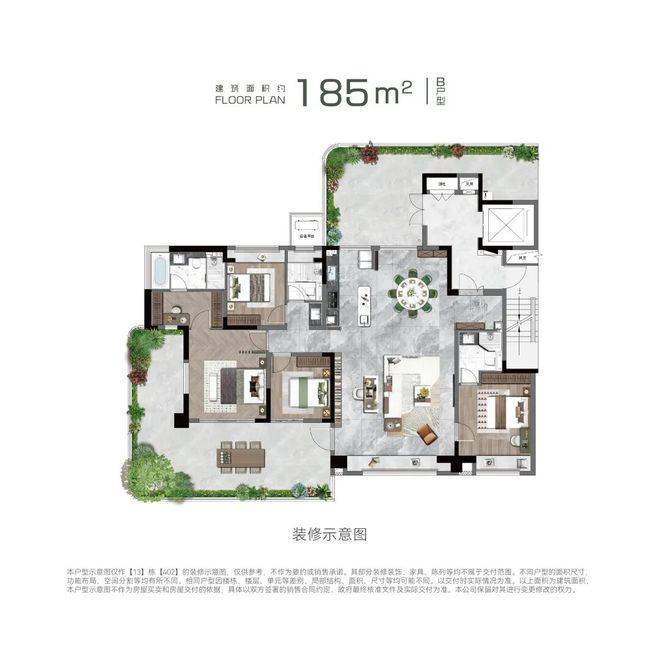 创新曲面转角院落,并实现全户型搭载“客厅-空中庭院”的主动线设计,整体营造立体墅式庭院生活场景。
