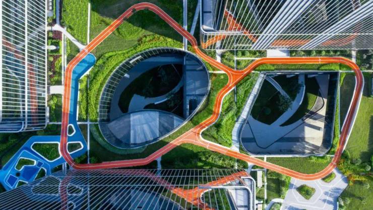 菜单来了,它还藏着一座 空中跑道花园。沿着屋顶慢跑,脚踏绿意、目之所及是整片城市天际线,比许多楼盘的地面园林还更有高级感。