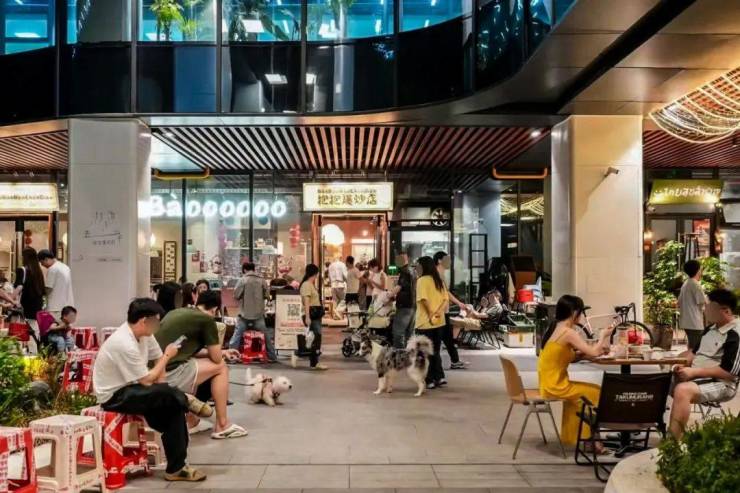 自带约3万㎡商业街区,体量比肩天目里。绿植与外摆交错,有种曼谷式的“松弛烟火气”。
