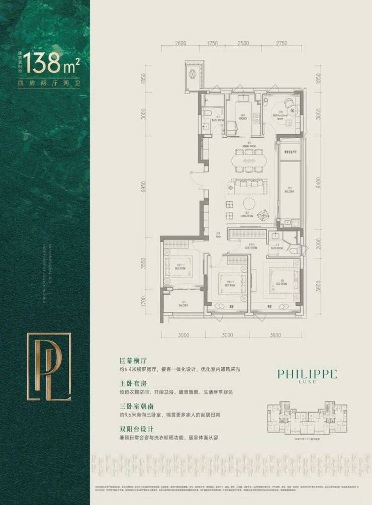 建面约138㎡是全明边套,三面采光,270°环绕视野。配上约6.4米横厅与大阳台,像一块被阳光浸透的生活幕布,日常就很有度假感。
