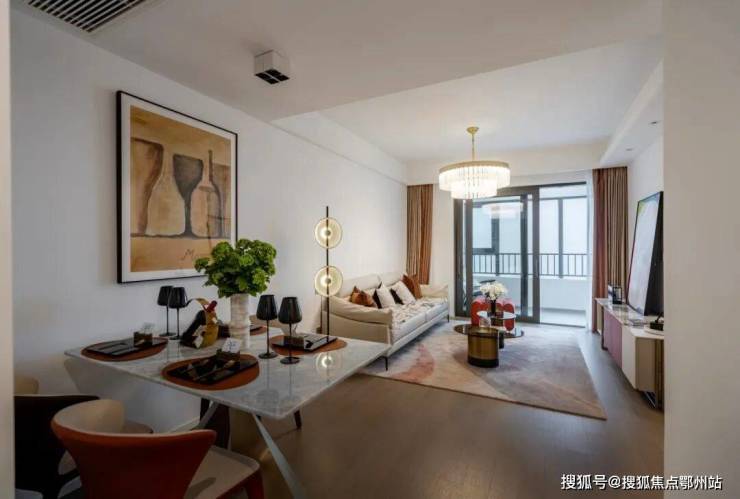 以建面为100m²户型为例,大开间短进深,结合南向三面宽,充分拉开采光面,畅享清风对流;餐客双厅一体化设计,为一家人的互动留足空间,聚餐、观影、休闲、娱乐样样全能;套房式主卧设计,独立卫浴、衣帽间,让生活的私密与尊崇兼而有之。