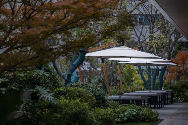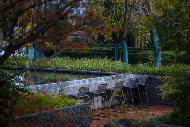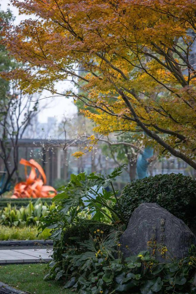 湖珀隐秀府雕琢每一处园林空间,将自然融入生活,遴选优质花卉树种,移植榉树、朴树、枫树林、乌桕等名贵树种,东西入口娜塔莉树阵承启大家风范,北门朴树苍翠浓荫,月光宝盒廊架下乌桕、三角枫错落有致,实现春夏青郁,秋冬淞黄,四季变换于一花一草中彰显。