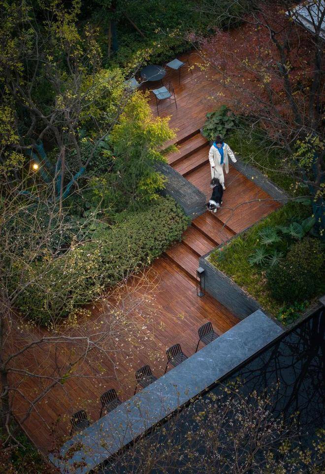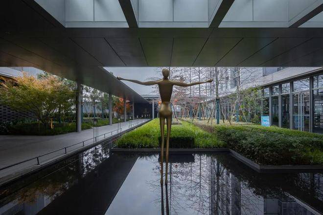 从门庭入内,与自然亲密无间,行于长廊,让归家途中风雨无忧,长廊之外以艺术雕塑为核心,拥抱整片杉林,入目皆景,四时各异。