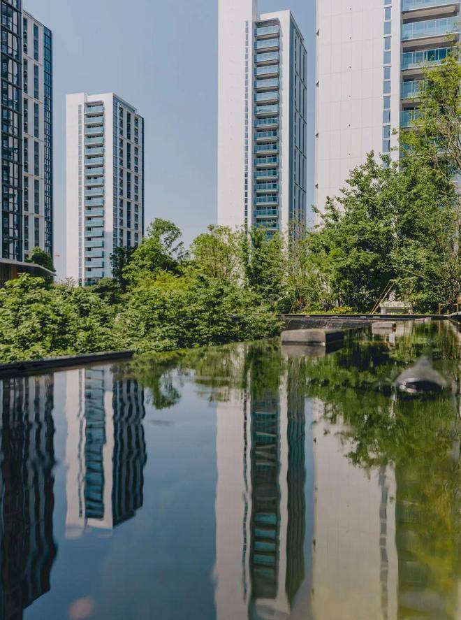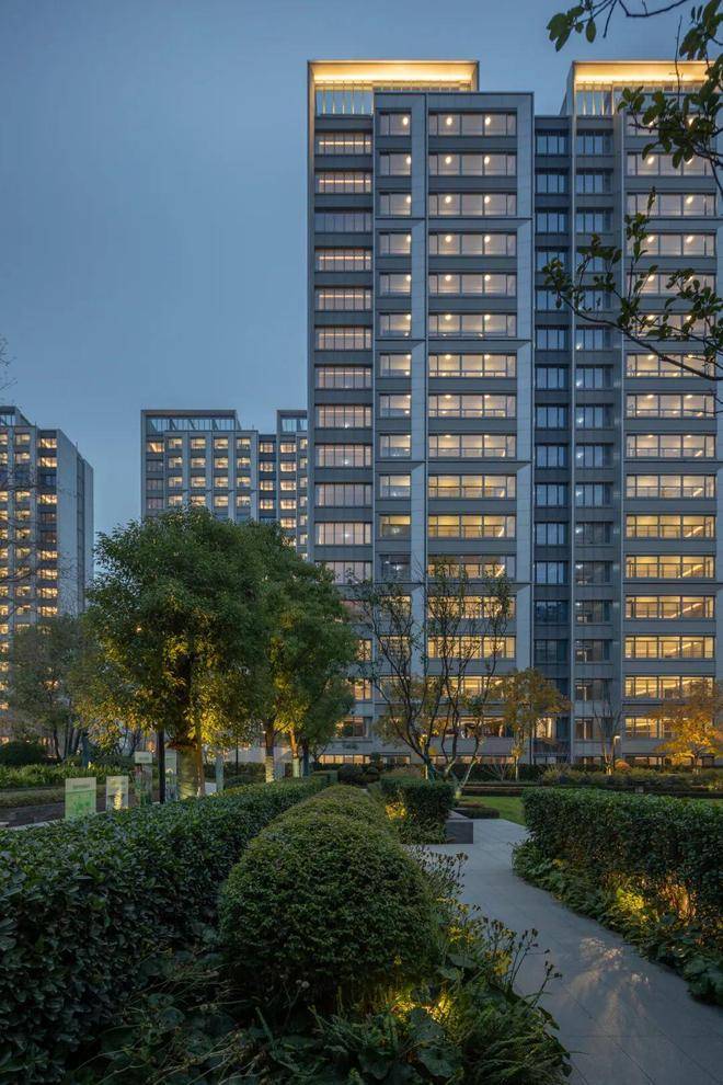 从隐秀系开篇之作杭州古翠隐秀,到绍兴湖珀隐秀府,隐秀系产品的基因透过城市在地文化与国际理念的赋能,在设计中通过对玻璃透光度、反射率的不断比对及对铝型材的反复打样,最终呈现出与晴空融为一体、具有高辨识度的白月光外立面,营造出建筑独一无二的美感,再加以高度假感的景观、高品质的林下空间,实现了当代住宅的高级感,在镜湖衍生出新的灵感传承与生活语境。