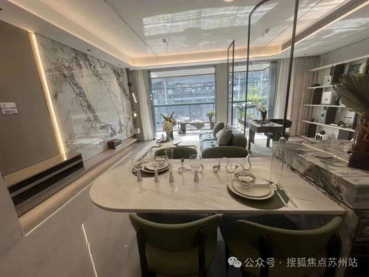 像空调新风地暖“豪宅三大件”齐备,比如中央空调甄选东芝品牌;厨具方面,采用方太的蒸烤一体机、空调油烟机,内嵌冰箱甄选卡萨帝品牌;客厅岩板背景墙也是交付标准;
