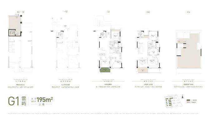 目前,在售一期5套建面约175-220m²叠墅(四层)