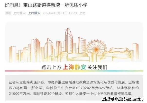 尤其在教育方面,10月31日上海静安发布一则新进展,项目周边中兴社区C070202单元325街坊暂拟引入静安一中心小学优质教育资源品牌,该学校的设计工作由负责北京奥运会鸟巢设计的中国工程院院士、著名建筑设计师李兴钢领衔担纲,总建筑面积约21000平方米,规划建设30个班级,将为中兴社区及周边区域的居民子女提供更多优质的教育选择。
