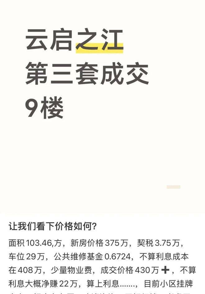 更重要的是,最近云启之江交付了,目前小户型已经成交三套了,成交价约4万出头。这比知海棠贵出了差不多8千一平,一套知海棠109方就可以省出了八九十万了,购买一辆很好的豪车了。
