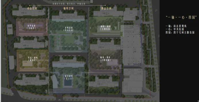 景观规划:“两轴四园”设计,含580米中央景观轴、300米健康轴及童乐园等主题园区,移植大胸径乔木;
