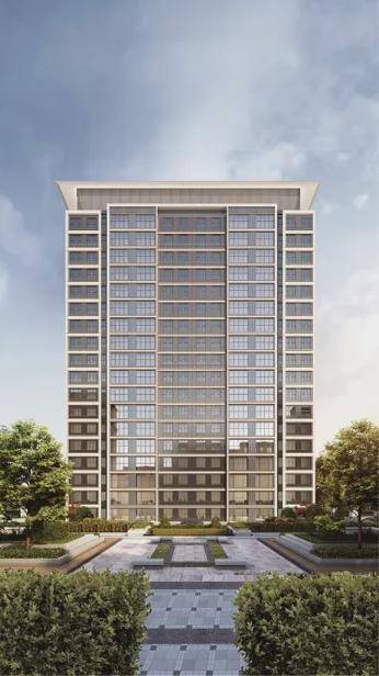 主题风格:外立面采用经典时尚现代主义风格,通过温和的色彩搭配、简练的横向线条、黄金比例的立面比例、极简抽象的建筑符号、建筑顶部的飘板,呈现一个现代风格和艺术气质结合的高品质社区。