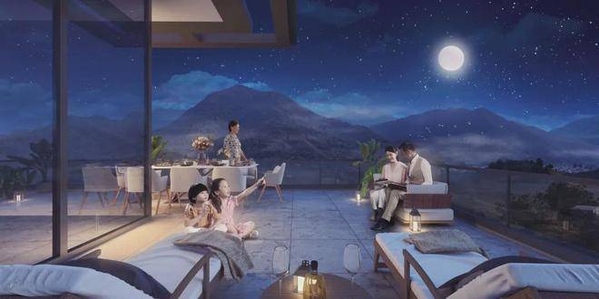 上叠的大露台上,可以围坐在天幕下,铺上茶席,架起一盏小巧便携的茶炉,慢悠悠地烹茶品茗,体悟黄庭坚“风炉煮茗卧西湖”的心境,看袅袅茶烟升腾流动,与不远处万亩茶园和西湖群山上舒卷的白云恍若一色。