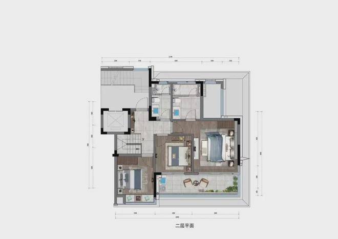 项目规划是根据规划要求来的,建筑宜采用坡屋顶、粉墙黛瓦,体量宜小巧,色彩采用水墨淡浓,体现出了中式建筑风格:下叠的院子中,绿意满怀,清风将城市中的纷扰吹远,竹叶纷飞里透着隐隐茶香,可以“闲将怡情踏幽径,一片浓荫带露噙”,心中有斑斓,草木亦生华,与三五知己邀约,一壶清茗半盏月,感悟人生百态。建筑面积138㎡的上叠在三楼和四楼,而160㎡的下叠,则在一楼和二楼。一层为客厅和客卧,一层为主卧和其余客卧,四室两厅三卫,动静功能分区,动线合理。此外,还有地下室,隔为两层,上叠和下叠,一户可各取一层。