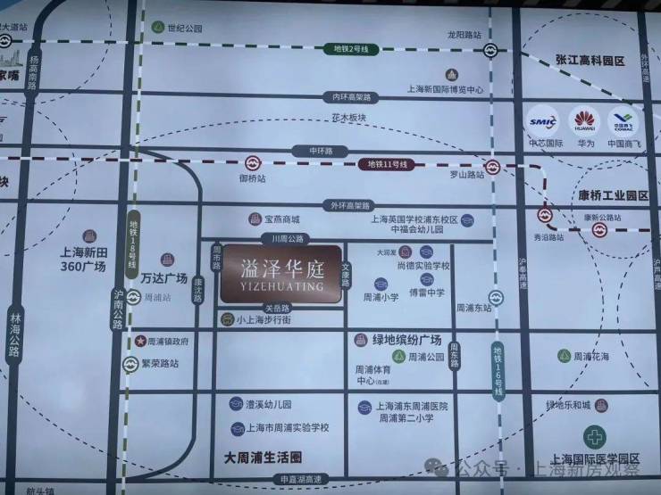 溢泽华庭位于浦东周浦板块,与18号线周浦站直线距离约1.4公里,可以通过共享单车或公交车接驳。溢泽华庭一期是2017建成的动迁房,已交付入住。