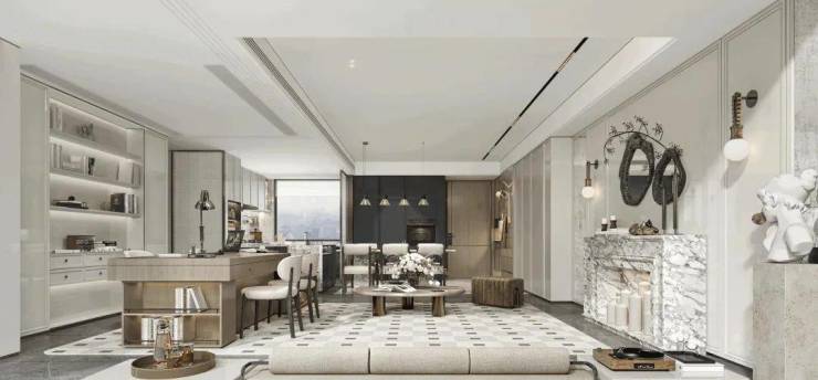 尤其是主卧的套房,不仅有豪华卫浴,大尺度衣帽间,甚至书房、工作室空间就在边上,业主几乎可以做到不出卧室就能享受闲情逸趣。