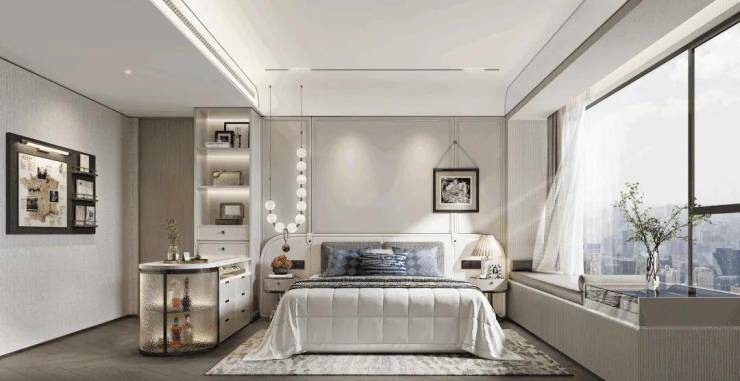 主卧270°无柱转角飘窗,实现室内外景观无缝衔接;