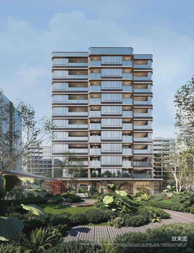 在立面塑造上,建筑呈现出公建化的精致与简约。线条干净利落,大面积玻璃幕墙与高级金属、石材材质结合,勾勒出现代而典雅的轮廓。立面的设计不仅关乎美学,更服务于生活,通过优化的窗墙比,将板上的花园盛景与远方的城市风光最大限度地引入室内。