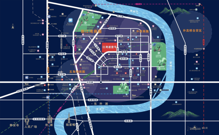 商业配套方面:现有五角场商圈,万达广场,合生汇,巴黎春天,百联又一城等高端商业围绕。仅临项目1.5公里新江湾片区由“铁狮门”打造的尙浦领事双子大楼,将会成为杨浦区第一高楼,未来北部最高标准开发的城市综合体,落成后即将成为杨浦新的核心CBD标杆。