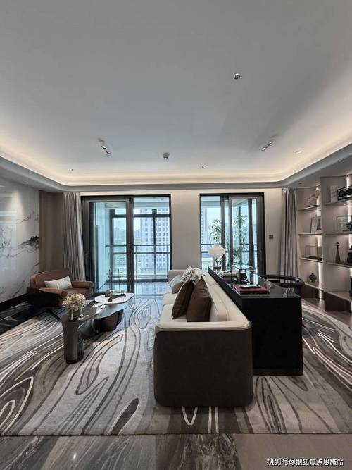 吊顶采用一体化大平顶加回型吊顶设计,并且在四个角均匀做了圆弧处理,让整个空间感更加和谐圆润。