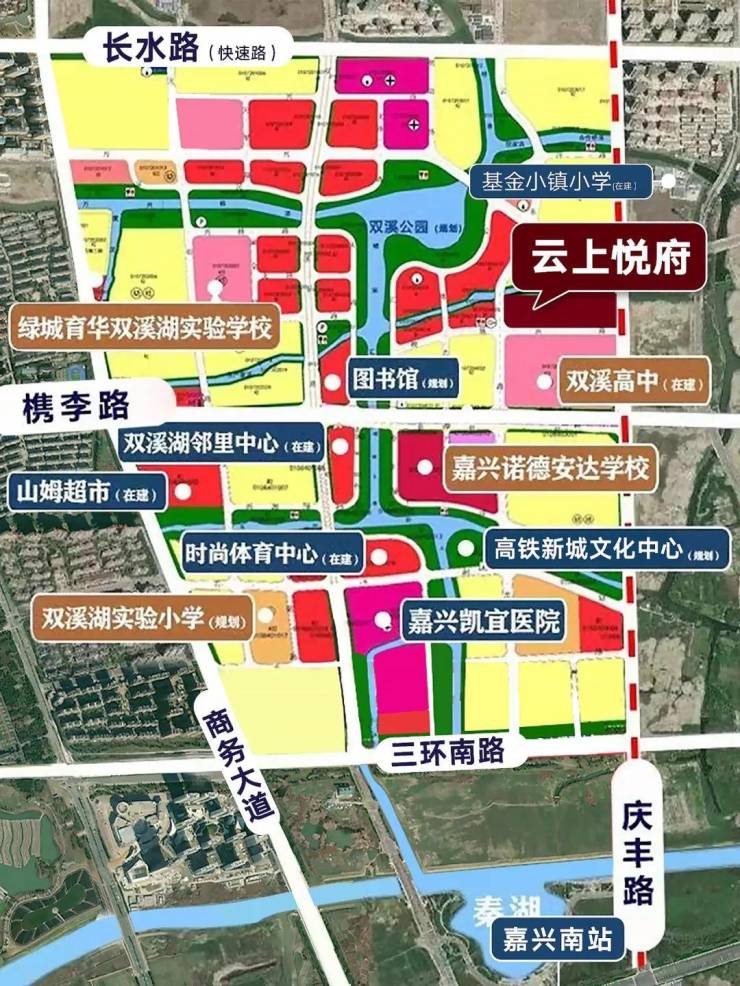 云上悦府作为嘉兴首个TOD住宅项目,又择址国商双溪湖版块,多重buff叠加。